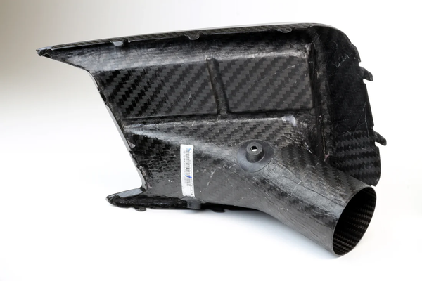 This component is formed in the autoclave at high temperatures using pre-pregnated carbon fiber manufacturing processes, for high strength and low weight. -
